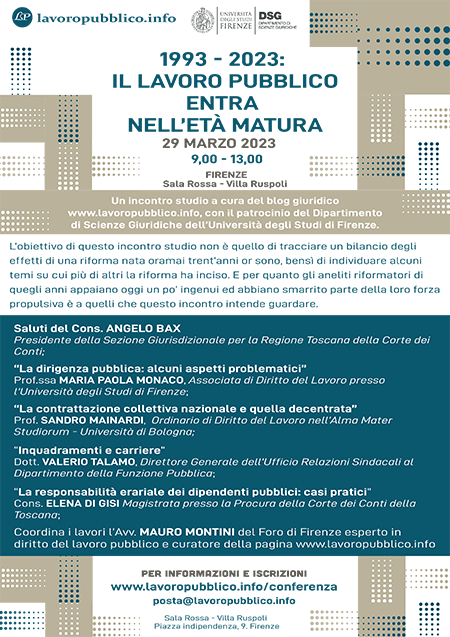 www.lavoropubblico.info, con il patrocinio del Dipartimento di Scienze Giuridiche dell’Università degli Studi di Firenze