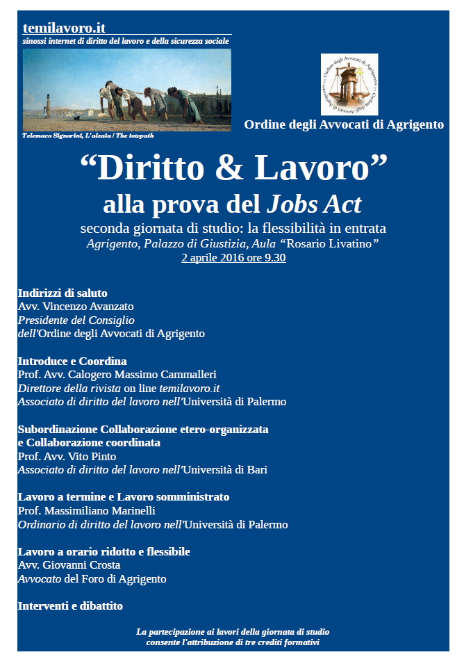 AGRIGENTO - “Diritto & Lavoro” alla prova del Jobs Act | seconda giornata di studio: la flessibilità in entrata