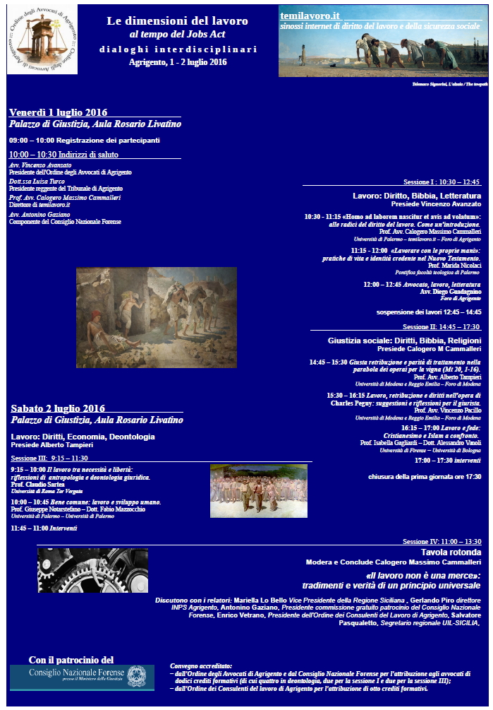AGRIGENTO - Le dimensioni del lavoro al tempo del Jobs Act (1-2 luglio 2016)