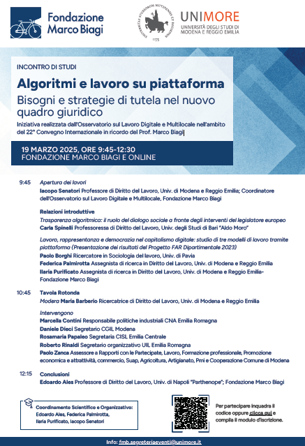 Iniziativa realizzata dall’Osservatorio sul Lavoro Digitale e Multilocale nell’ambito del 22° Convegno Internazionale in ricordo del Prof. Marco Biagi