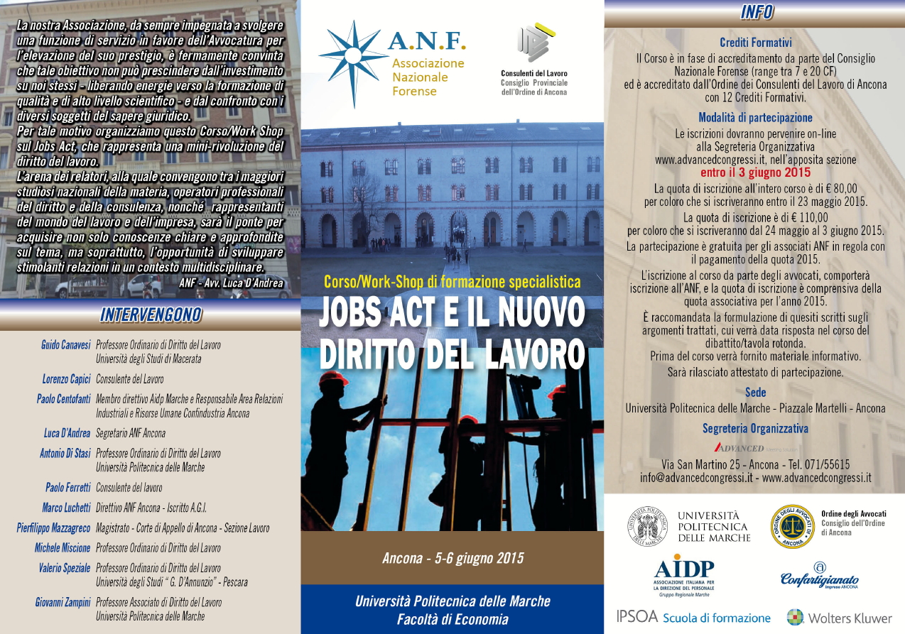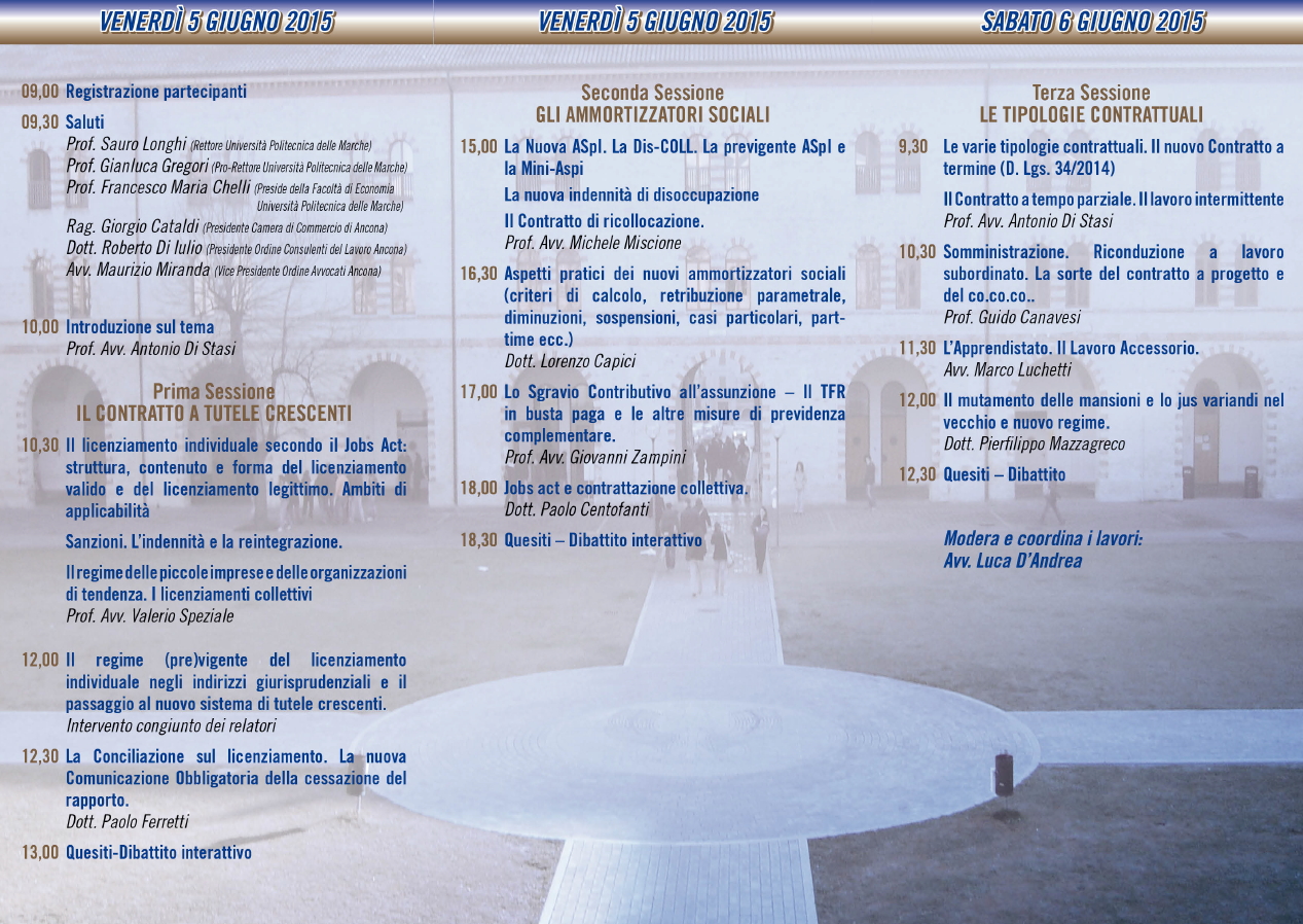 Da Ven, 05/06/2015 a Ven, 05/06/2015 Mode On-site-only 14/11/2022 ANCONA - Jobs Act e il nuovo Diritto del lavoro (5-6 giugno 2015) on-site only | Piazza Martelli - 9:00