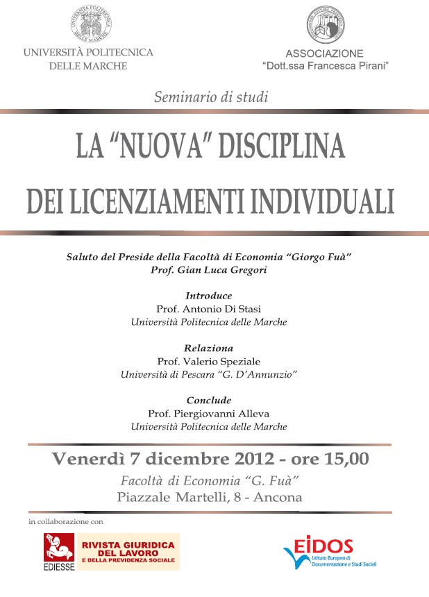 Da Ven, 07/12/2012 a Ven, 07/12/2012 Mode On-site-only 14/11/2022 ANCONA - La "nuova" disciplina dei licenziamenti on-site only | Facoltà di economia "G. Fuà", piazzale Martelli 8 - 15.00