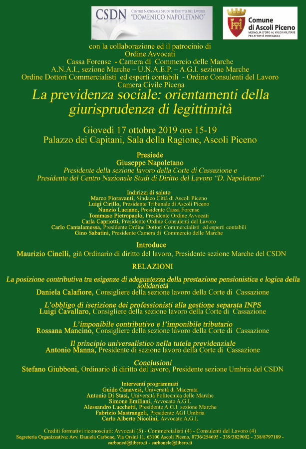 ASCOLI PICENO - La prevenzione sociale: orientamenti della giurisprudenza di legittimità