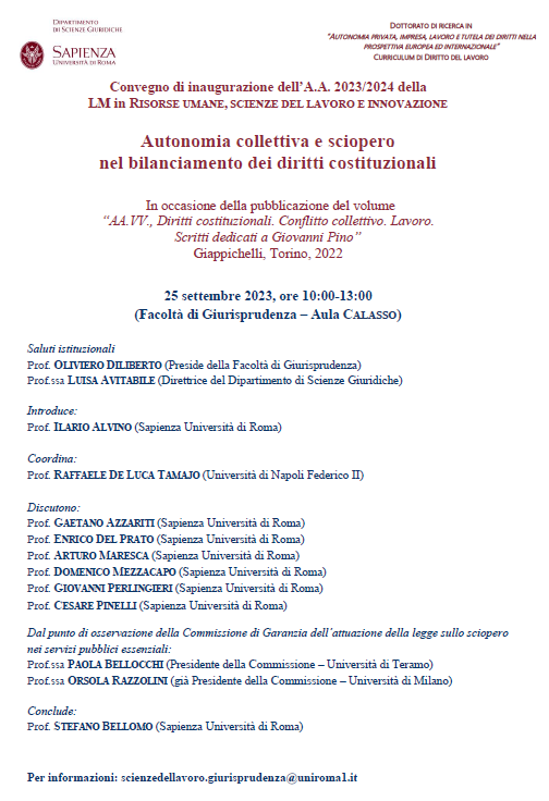 Per informazioni: scienzedellavoro.giurisprudenza@uniroma1.it