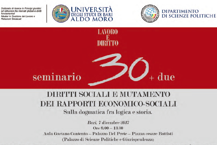 Da Gio, 07/12/2017 a Gio, 07/12/2017 Mode On-site-only 14/11/2022 BARI - Diritti sociali e mutamento dei rapporti economico-sociali on-site only | Piazza Cesare Battisti - ore 9