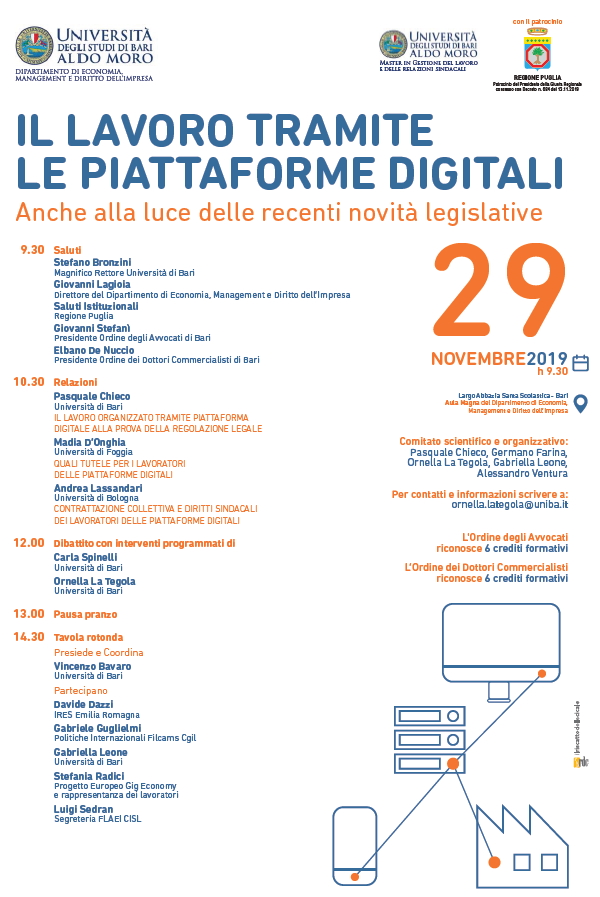 BARI - Il lavoro tramite le piattaforme digitali anche alla luce delle recenti novità legislative