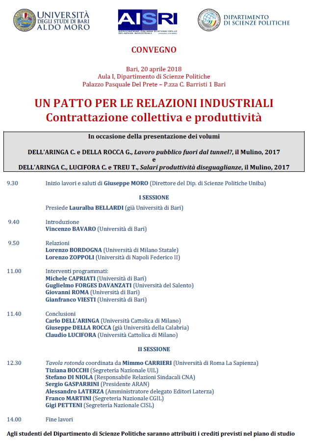 Da Ven, 20/04/2018 a Ven, 20/04/2018 Mode On-site-only 14/11/2022 BARI - Un patto per le relazioni industriali | Contrattazione collettiva e produttività on-site only | P.zza C. Barristi, 1 - ore 9.30