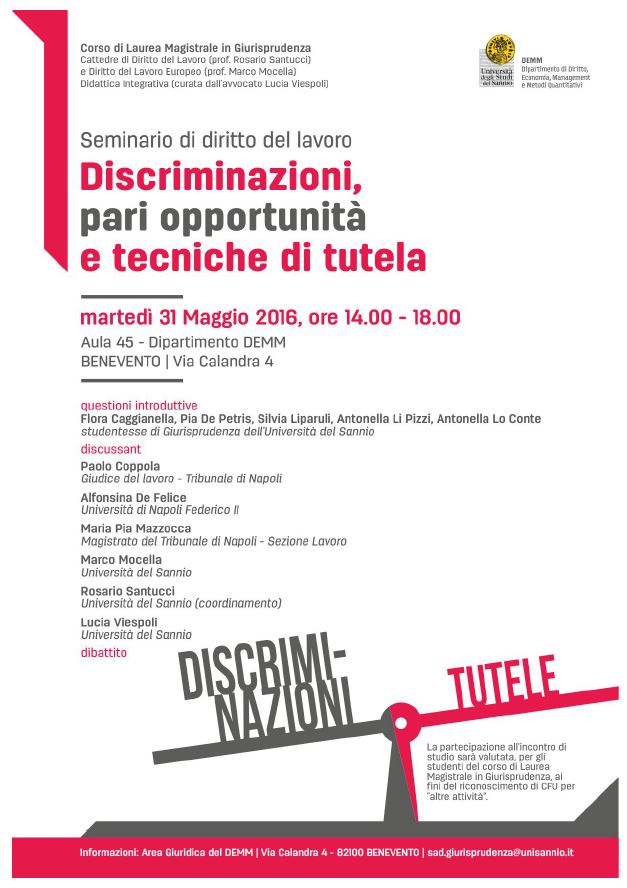 BENEVENTO - Discriminazioni, pari opportunità e tecniche di tutela