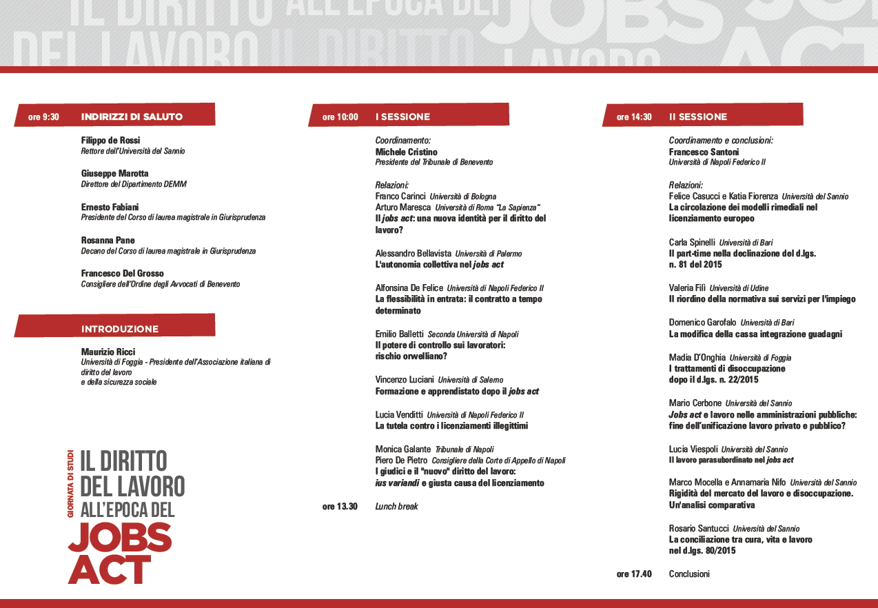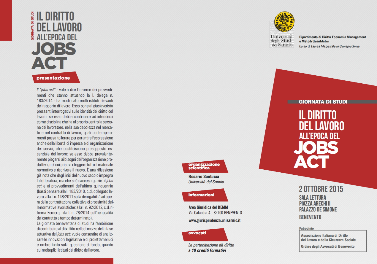 Da Ven, 02/10/2015 a Ven, 02/10/2015 Mode On-site-only 14/11/2022 BENEVENTO - Il diritto del lavoro all'epoca del Jobs Act on-site only | Piazza Arechi II - ore 9:30