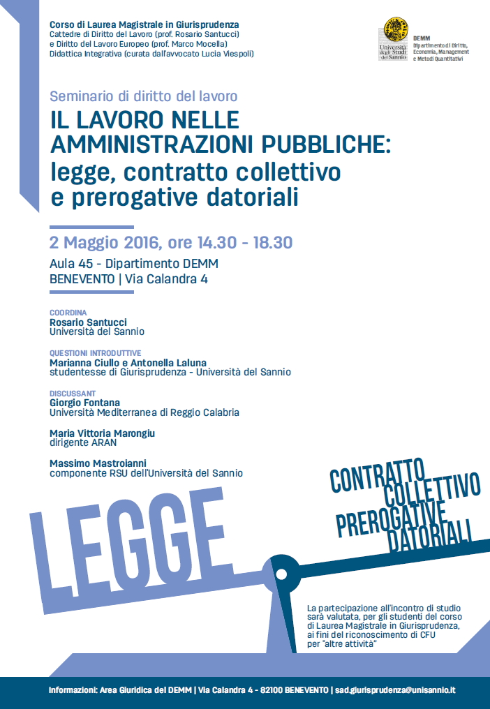 Da Lun, 02/05/2016 a Lun, 02/05/2016 Mode On-site-only 14/11/2022 BENEVENTO - Il lavoro nella amministrazioni pubbliche: legge, contratto collettivo e prerogative datoriali on-site only | Via Calandra, 4 - ore 14.30