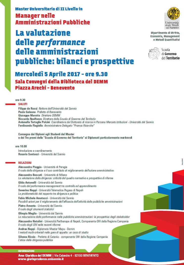 Da Mer, 05/04/2017 a Mer, 05/04/2017 Mode On-site-only 14/11/2022 BENEVENTO - La valutazione delle performance delle amministrazioni pubbliche: bilanci e prospettive on-site only | Piazza Arechi - ore 9.30