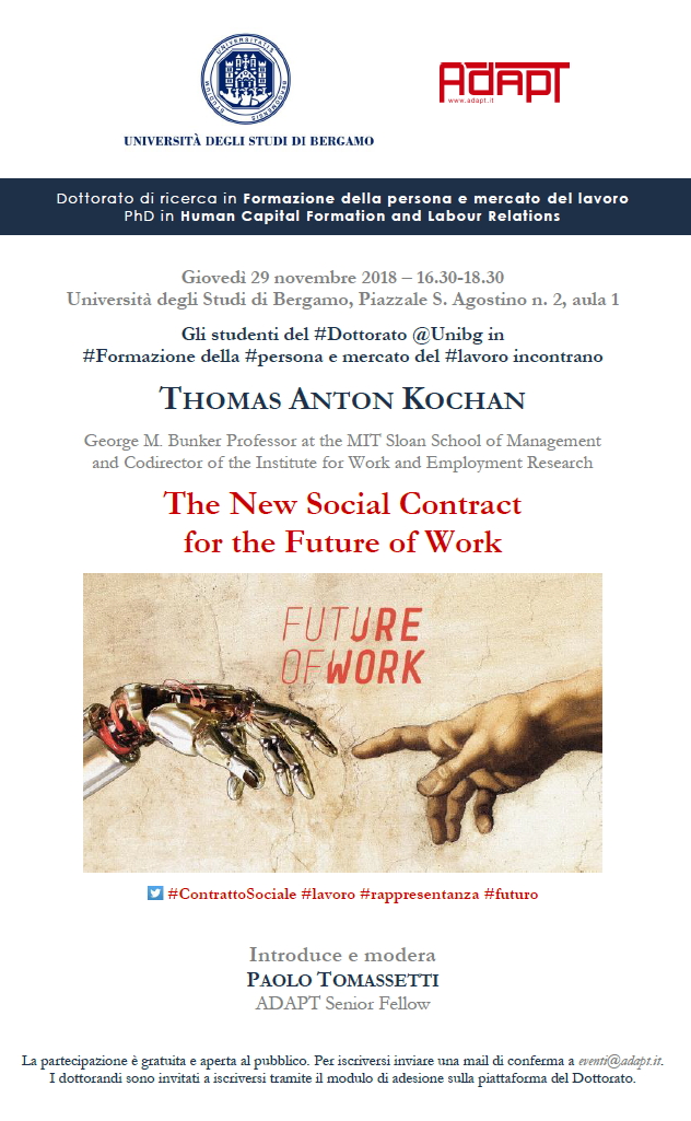 Da Gio, 29/11/2018 a Gio, 29/11/2018 Mode On-site-only 14/11/2022 BERGAMO - The New Social Contract for the Future of Work on-site only | Piazzale S. Agostino, 2 -ore 16.30