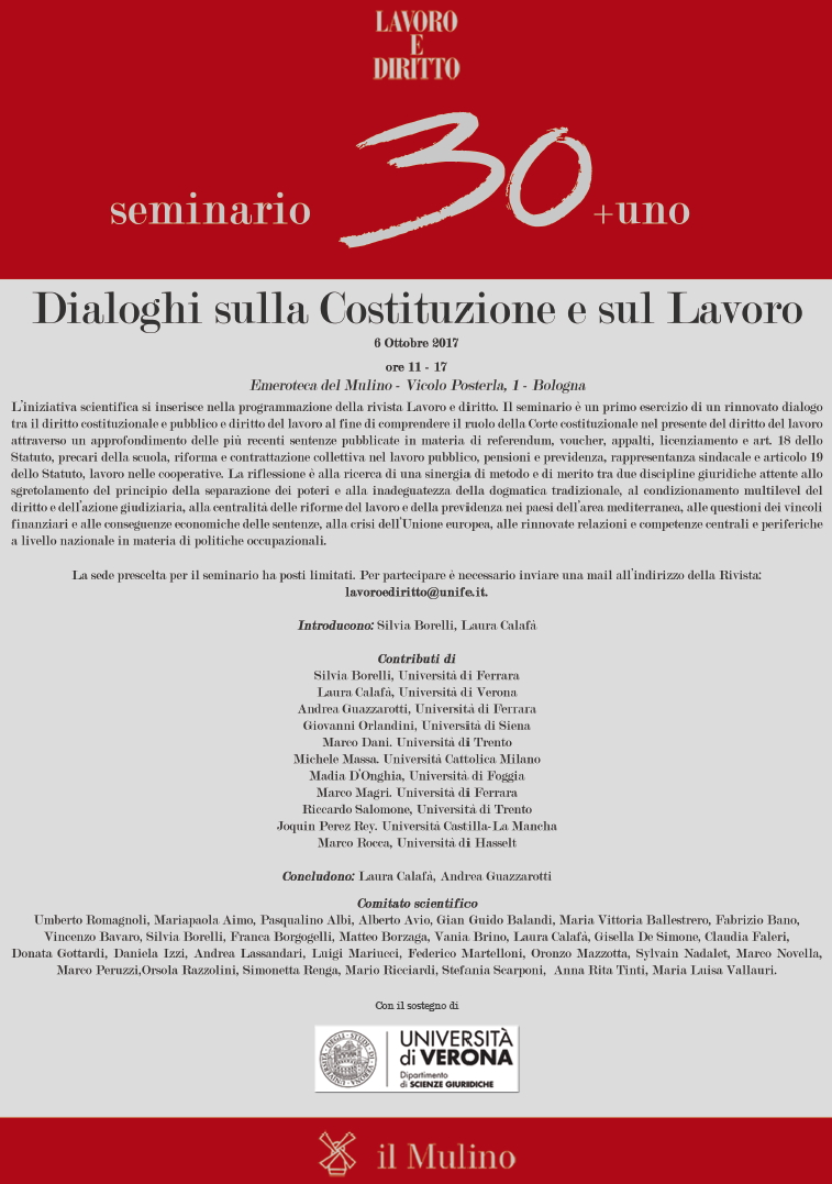 Da Ven, 06/10/2017 a Ven, 06/10/2017 Mode On-site-only 14/11/2022 BOLOGNA - Dialoghi sulla Costituzione e sul Lavoro on-site only | Vicolo Posterla, 1 - ore 11
