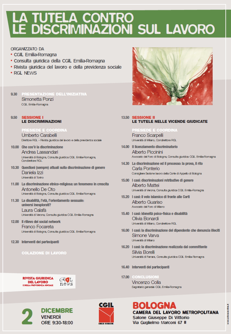 Da Ven, 02/12/2016 a Ven, 02/12/2016 Mode On-site-only 14/11/2022 BOLOGNA - La tutela contro le discriminazioni sul lavoro on-site only | Via Guglielmo Marconi, 67 - ore 9.30
