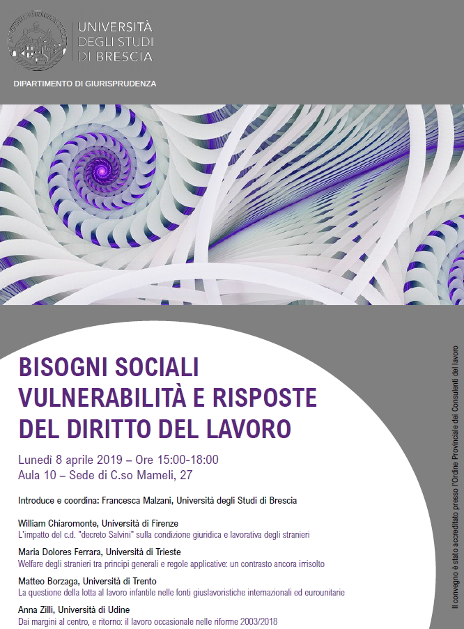 BRESCIA - Bisogni sociali, vulnerabilità e risposte del diritto del lavoro