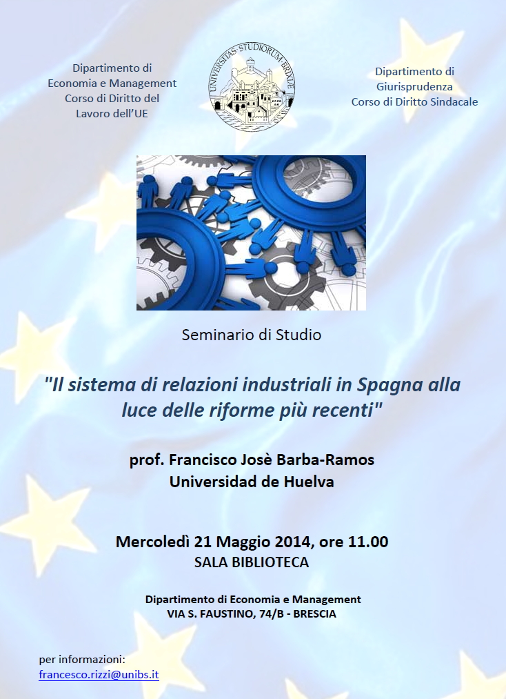 Da Mer, 21/05/2014 a Mer, 21/05/2014 Mode On-site-only 14/11/2022 BRESCIA - Il sistema di relazioni industriali in Spagna alla luce delle riforme più recenti on-site only | via S. Faustino 74/B - 11,00