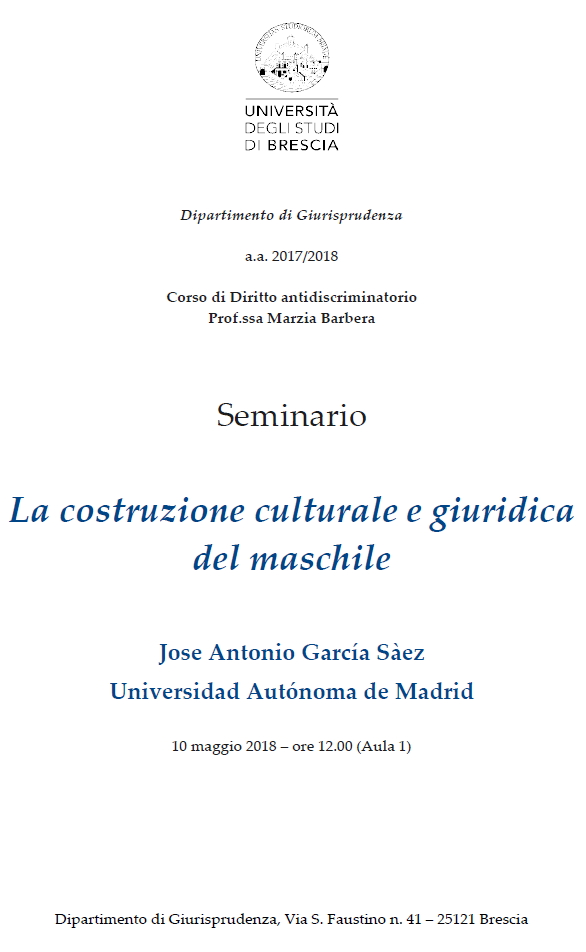 Da Gio, 10/05/2018 a Gio, 10/05/2018 Mode On-site-only 14/11/2022 BRESCIA - La costruzione culturale e giuridica del maschile on-site only | Via S. Faustino, 41 - ore 10