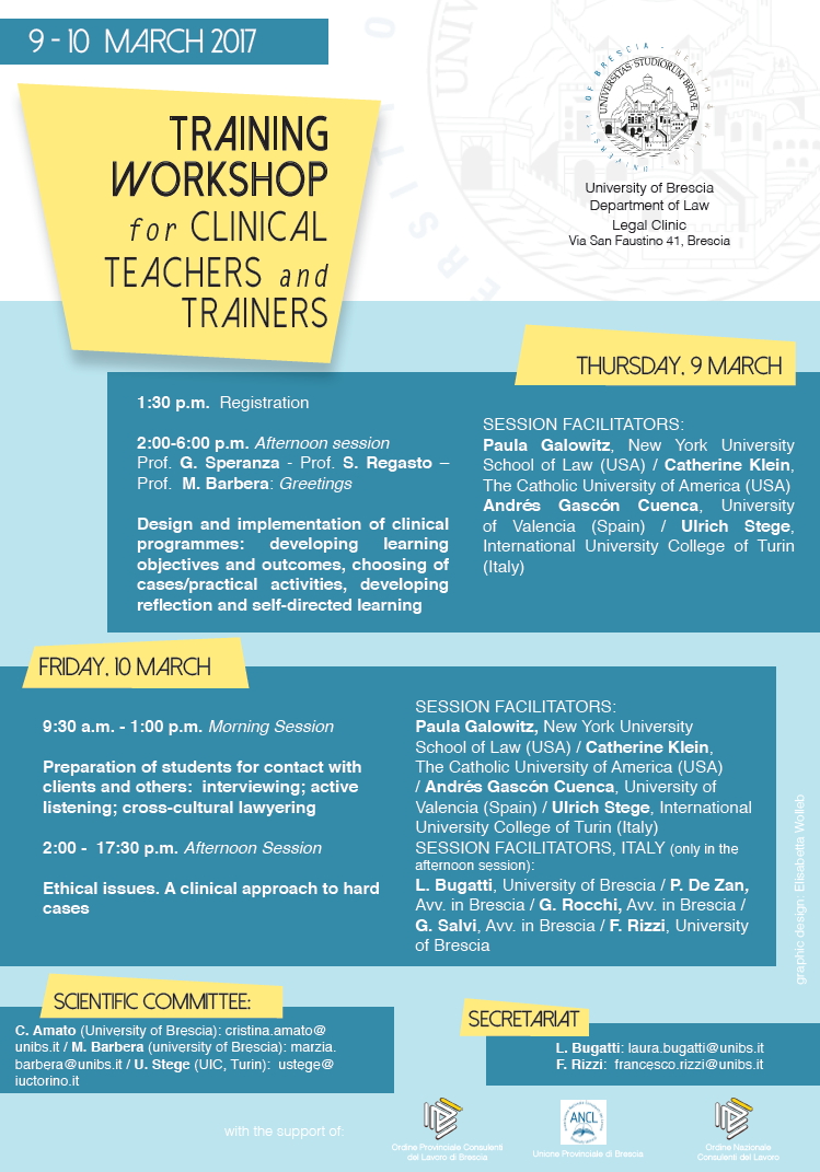 Da Gio, 09/03/2017 a Gio, 09/03/2017 Mode On-site-only 14/11/2022 BRESCIA - Training workshop for clinical teachers and trainers (9 e 10 marzo 2017) on-site only | Via San Faustino, 41 -ore 13.30
