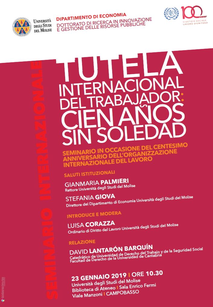 Da Mer, 23/01/2019 a Mer, 23/01/2019 Mode On-site-only 14/11/2022 CAMPOBASSO - Tutela Internacional del trabajador: cien años sin soledad on-site only | Viale Manzoni - ore 10.30