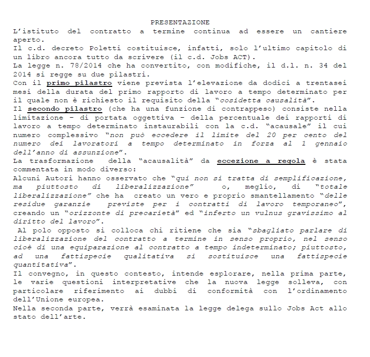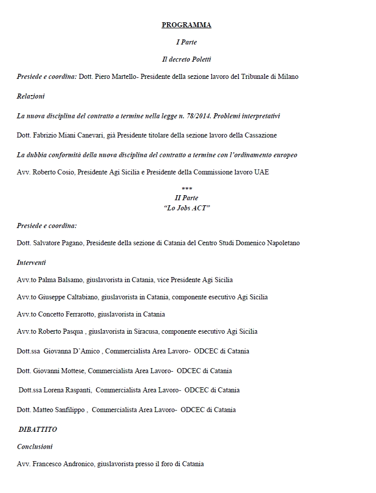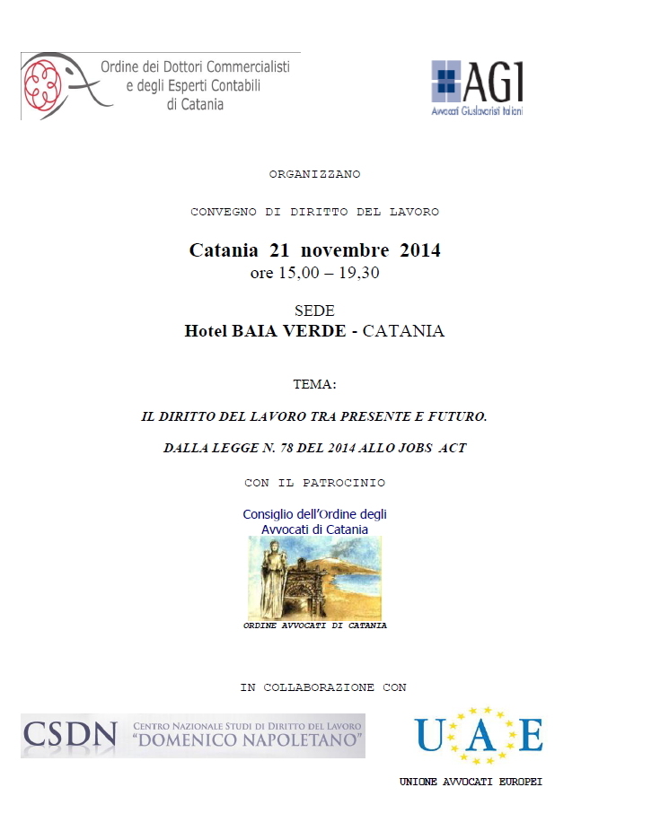 CATANIA - Il Diritto del Lavoro tra presente e futuro. Dalla legge n. 78 del 2014 allo Jobs Act