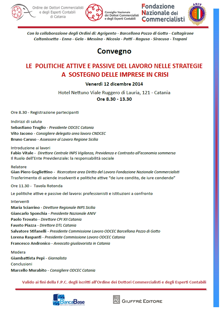 Da Ven, 12/12/2014 a Ven, 12/12/2014 Mode On-site-only 14/11/2022 CATANIA - Le politiche attive e passive del lavoro nelle strategie a sostegno delle imprese in crisi on-site only | viale Ruggero di Lauria, 121 – 8:30