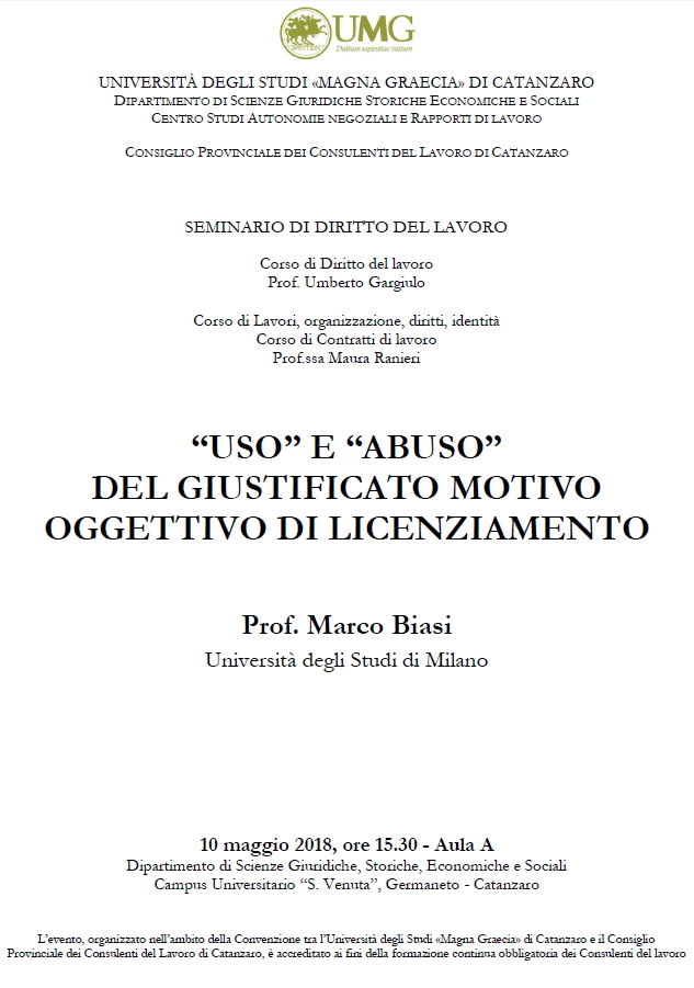 CATANZARO - “Uso” e “Abuso” del giustificato motivo oggettivo di licenziamento