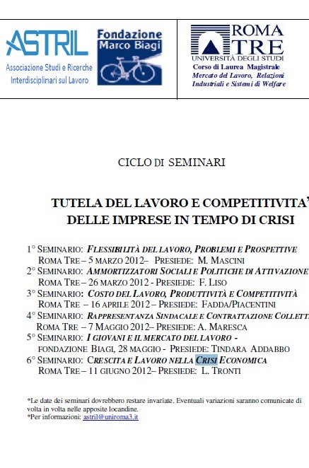 Ciclo di seminari: Tutela del lavoro e competitivita’delle imprese in tempo di crisi - 5° Seminario: I giovani e il mercato del lavoro