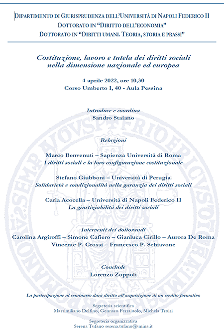 La partecipazione al seminario darà diritto all’acquisizione di un credito formativo Segreteria scientifica: Massimiliano Delfino, Gennaro Ferraiuolo, Michela Troisi