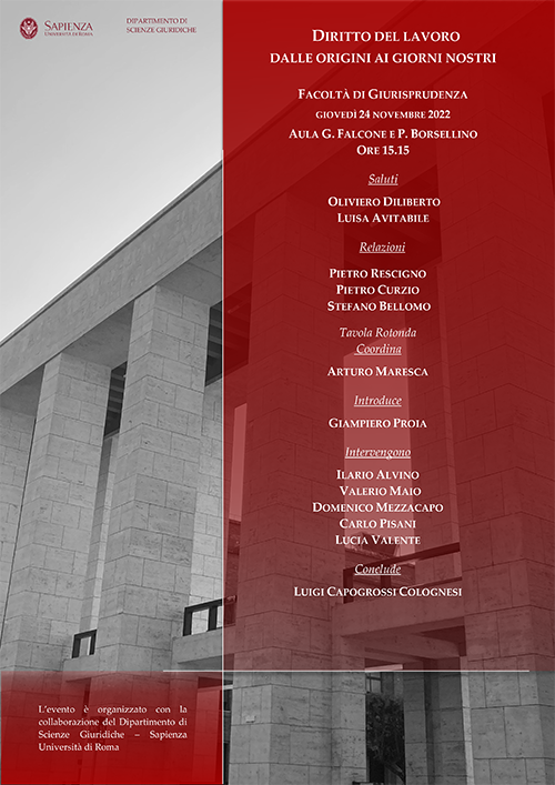 L’evento è organizzato con la collaborazione del Dipartimento di Scienze Giuridiche – Sapienza Università di Roma