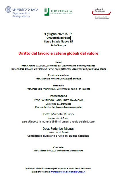 Da Mar, 04/06/2024 a Mar, 04/06/2024 Mode On-site-only File Programma203.02 KB 20/05/2024 Diritto del lavoro e catene globali del valore on-site only h. 15:00 | Corso Strada Nuova 65, Pavia Università di Pavia Dipartimento di Giurisprudenza - Aula Scarpa