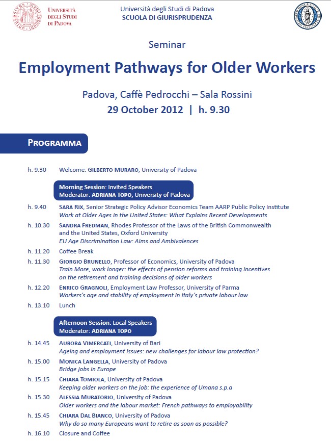 Da Lun, 29/10/2012 a Lun, 29/10/2012 Mode On-site-only 14/11/2022 Employment Pathways for Older Workers on-site only | Università degli Studi di Padova, Scuola di Giurisprudenza, Caffè Pedrocchi - 9.30
