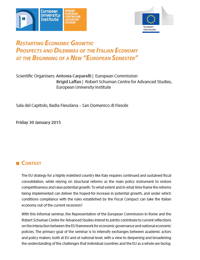 Da Ven, 30/01/2015 a Ven, 30/01/2015 Mode On-site-only 14/11/2022 FIESOLE (FI) - Restarting Economic Growth: Prospects and Dilemmas of the Italian Economy at the Beginning of a New “European Semester” on-site only | Sala del Capitolo, Badia Fiesolana