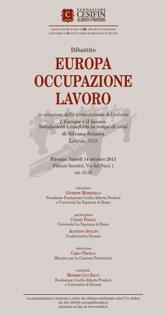 FIRENZE - EUROPA.OCCUPAZIONE.LAVORO. Dibattito in occasione della presentazione del volume 'L’Europa e il lavoro. Solidarietà e conflitto in tempi di crisi', di Silvana Sciarra