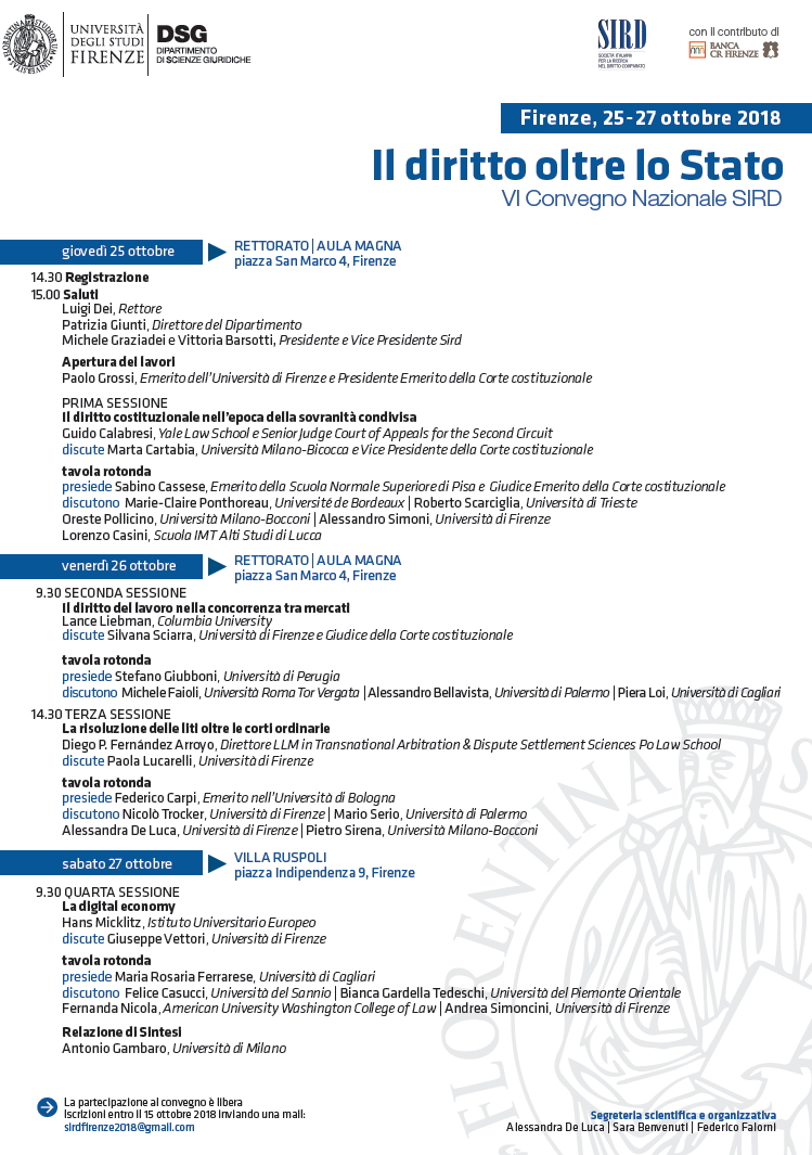 FIRENZE - Il diritto oltre lo Stato (25-27 ottobre 2018)