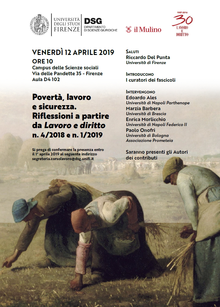 FIRENZE - Povertà, lavoro e sicurezza. Riflessioni a partire da Lavoro e diritto n. 4/2018 e n. 1/2019