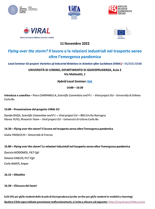 Local Seminar EU project: Varieties of Industrial Relations in Aviation after Lockdown (VIRAL) - VS/2021/0188