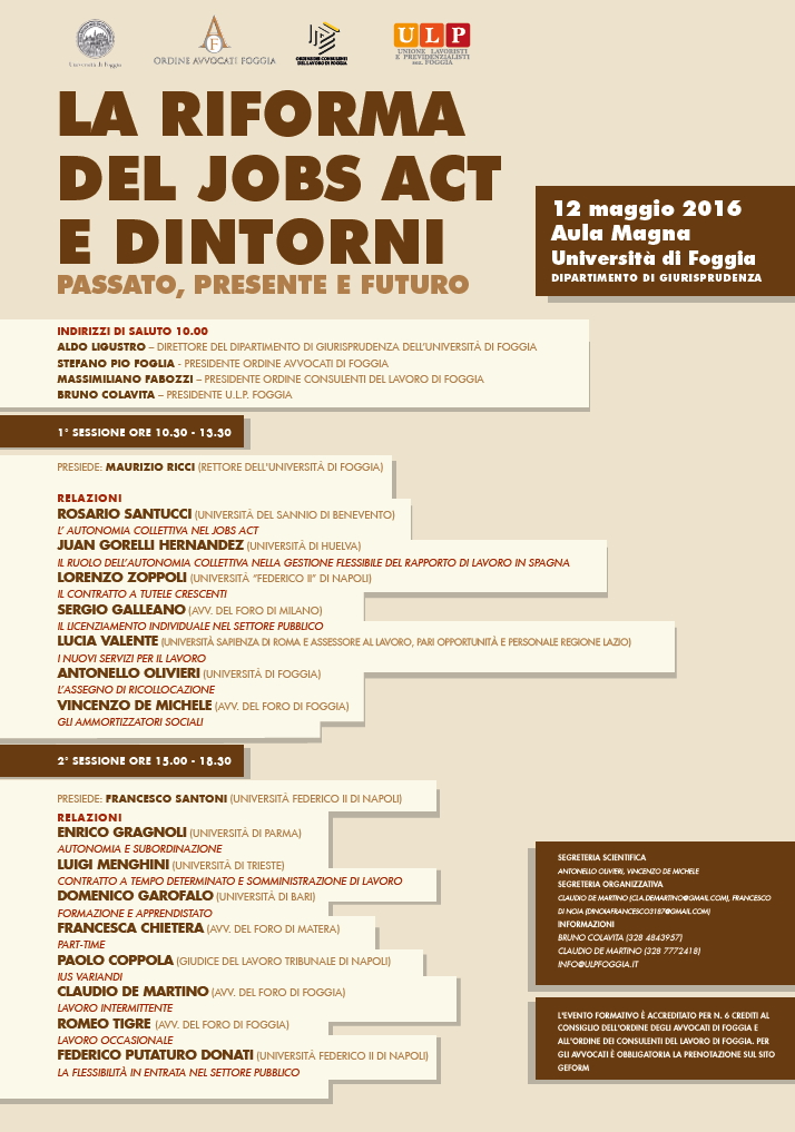 FOGGIA - La riforma del Jobs Act e dintorni