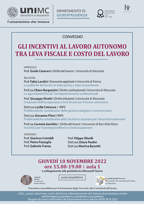 L’incontro è accreditato per la formazione degli Avvocati e dei Consulenti del lavoro.