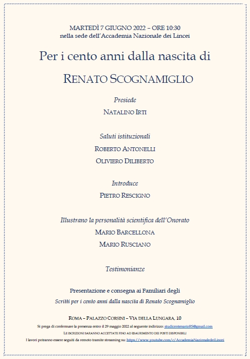 Si prega di confermare la presenza entro il 29 maggio 2022 al seguente indirizzo: studicentenarioRS@gmail.com