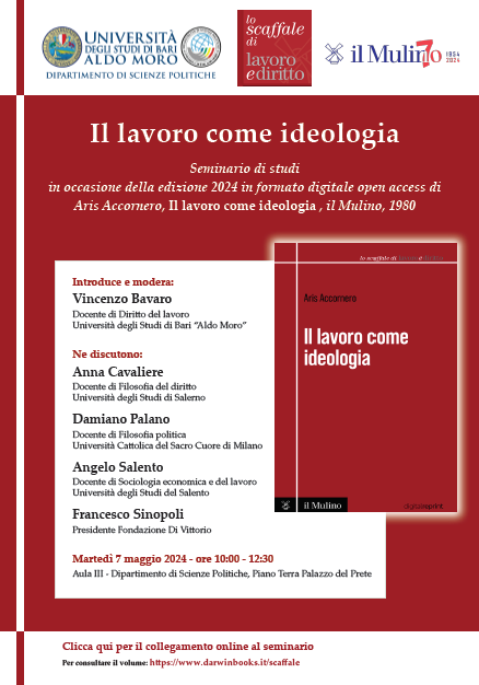 Seminario di studi in occasione della edizione 2024 in formato digitale open access di Aris Accornero, Il lavoro come ideologia , il Mulino, 1980