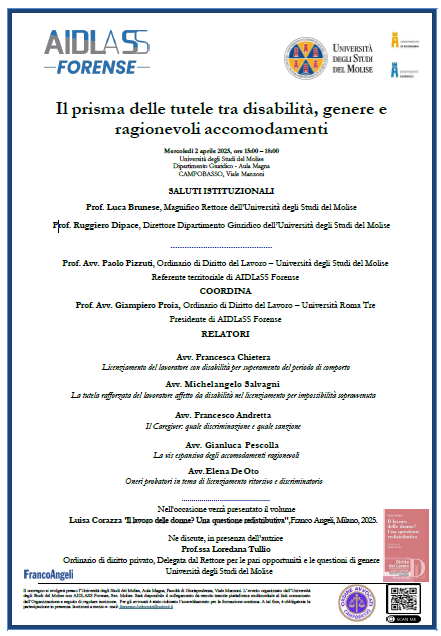 Organizzato da A.I.D.La.S.S. Forense Molise con il patrocinio del Dipartimento Giuridico e del Dipartimento di Economia dell'Università del Molise