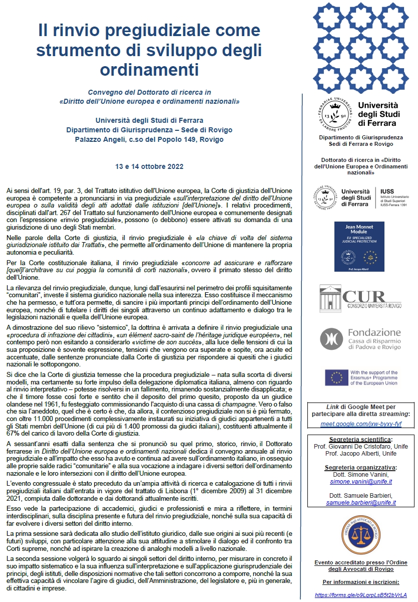 Convegno del Dottorato di ricerca in «Diritto dell’Unione europea e ordinamenti nazionali»