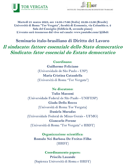 Martedì 21 marzo 2023, ore 14:30-17:00 (Italia) 10:30-13.00 (Brasile)