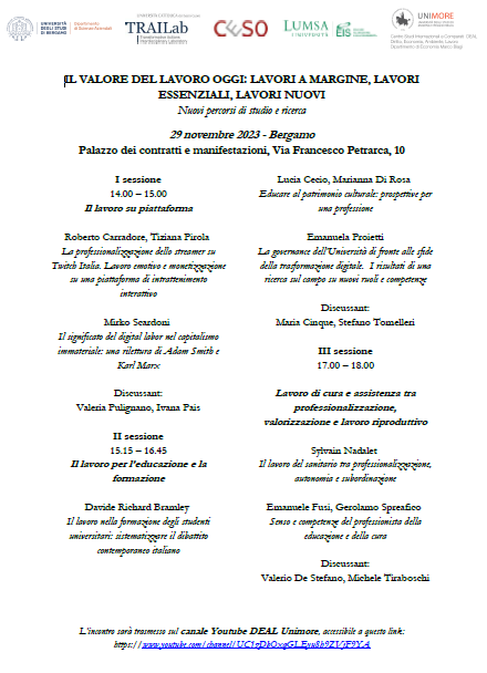 Il valore del lavoro oggi: lavori a margine, lavori essenziali, lavori nuovi. Nuovi percorsi di studio e ricerca
