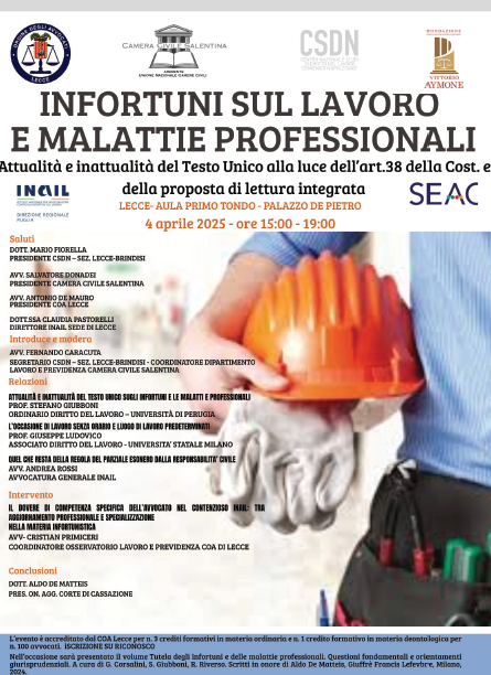 Nell'occasione sarà presentato il volume Tutela degli infortuni e delle malattie professionali. Questioni fondamentali e orientamenti giurisprudenziali. A cura di G. Corsalini, S. Giubboni, R. Riverso. Scritti in onore di Aldo De Matteis, Giuffrè Francis Lefevbre, Milano, 2024.