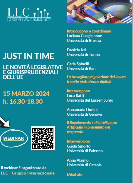 Da Ven, 15/03/2024 a Ven, 15/03/2024 Mode Online-only File Programma196.15 KB 06/03/2024 Just in time. Le novità legislative e giurisprudenziali dell'UE online only h. 16.30 Il webinar è organizzato da LLC - Gruppo Internazionale Per partecipare: link