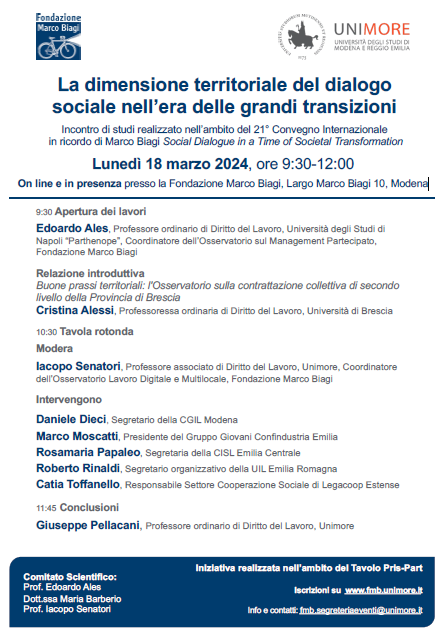On line e in presenza presso la Fondazione Marco Biagi, Largo Marco Biagi 10, Modena