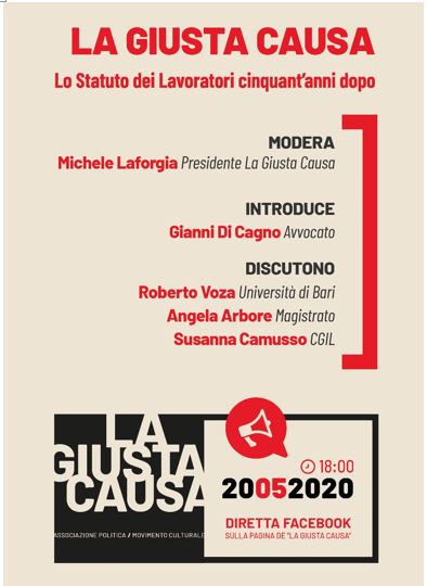 Da Mer, 20/05/2020 a Mer, 20/05/2020 Mode On-site-only 14/11/2022 La giusta causa. Lo Statuto dei Lavoratori cinquant'anni dopo on-site only | diretta Facebook ore 18