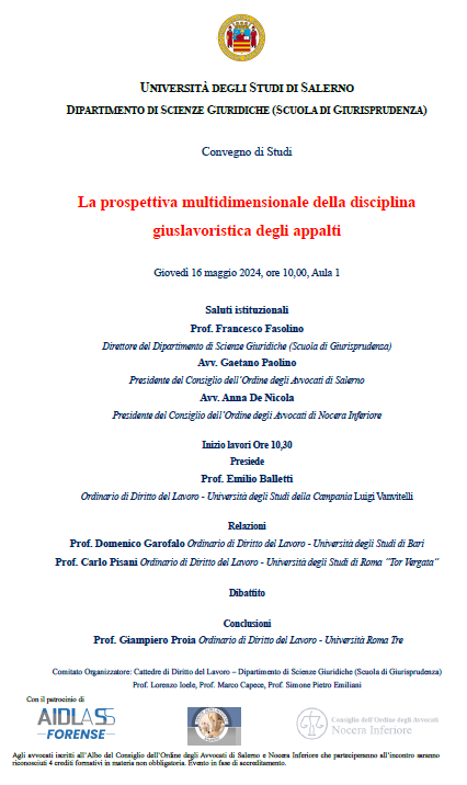 on-site only h. 10:00 | Dipartimento di Scienze Giuridiche, Salerno