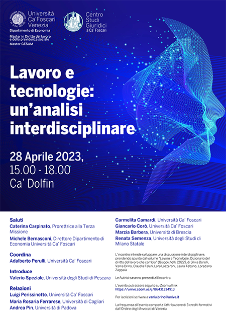 L’evento può essere seguito su Zoom al link https://unive.zoom.us/j/86431334913